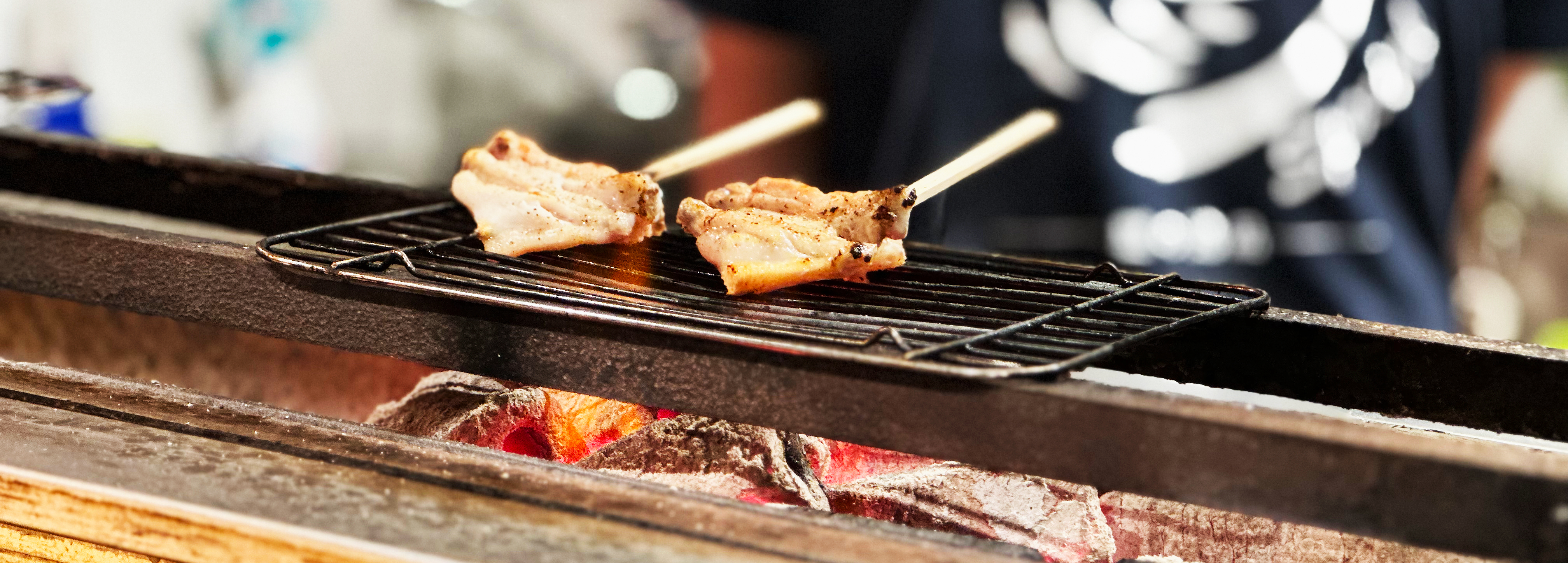 焼き鳥、炭火・串焼きはなれのこだわりは、 店主自らが厳選した納得のいく新鮮素材を使用すること、 またお店自慢の特性タレにあります。